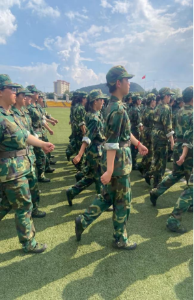 清晨,第一缕阳光刚探出头,清脆的哨声便划破校园的宁静,同学们迅速整理好着装,以饱满的精神状态在操场集合。教官洪亮的口令声响起:“开始训练!”同学们身姿挺拔,眼神坚定,开启了一天的军训时光。