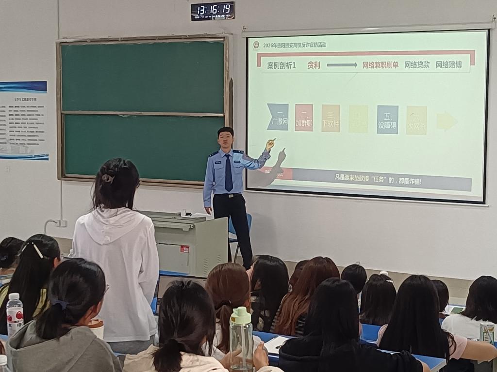为切实提升学生反诈防骗意识,守护校园财产安全,学校联合贵阳贵安公安部门,以分批次、全覆盖形式开展“百警进班”反诈宣传。2026年4月13日,贵安新区公安局民警走进做爱视频